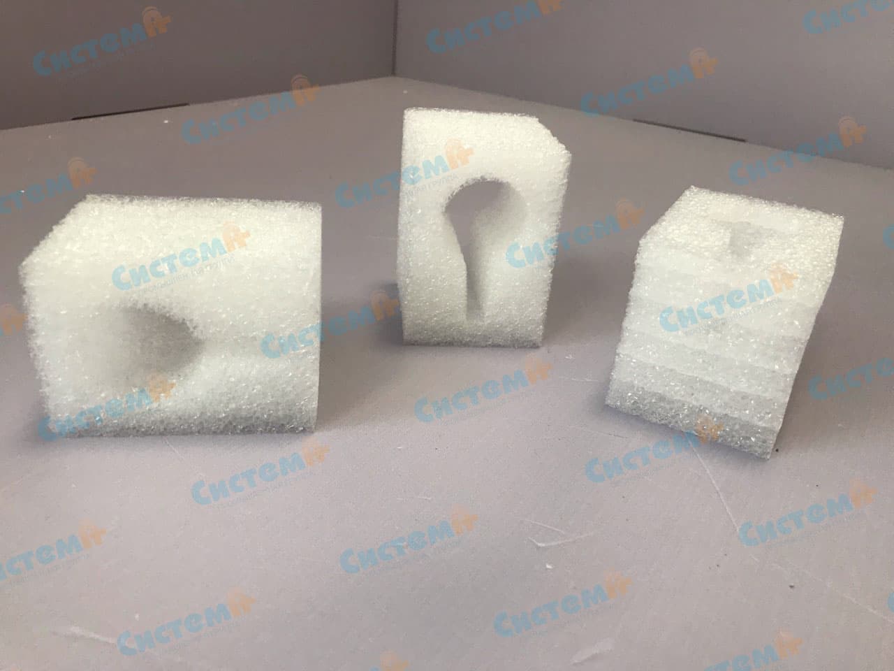 Заказчик прислал нам размеры флаконов, по ним инженеры разработали чертежи накладок. Из несшитого вспененного полиэтилена изготавливают различные упаковочные изделия: ложементы, вкладыши, уголки, накладки. Этот материал ценят за его легкость и прочность, он хорошо сохраняет форму, выдерживает высокие нагрузки. При этом НПЭ один из бюджетных полимерных материалов, упаковка из него не будет увеличивать себестоимость вашего товара.